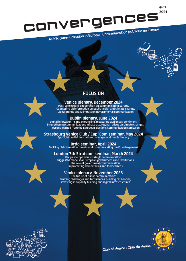 Questa pubblicazione intende amplificare l'interazione tra gli addetti ai lavori approfondendo i temi sviluppati dal Club in modo da informare sugli esiti delle riunioni, ma anche e soprattutto anticipando nuove questioni prioritarie che alimenteranno il dibattito a breve e medio termine. Con "Convergences" il Club di Venezia si apre anche al pubblico esterno, per creare un terreno aperto e trasparente di confronto con i cittadini e alimentare un dialogo sulla comunicazione che rispetti le priorità politiche, sociali e culturali.