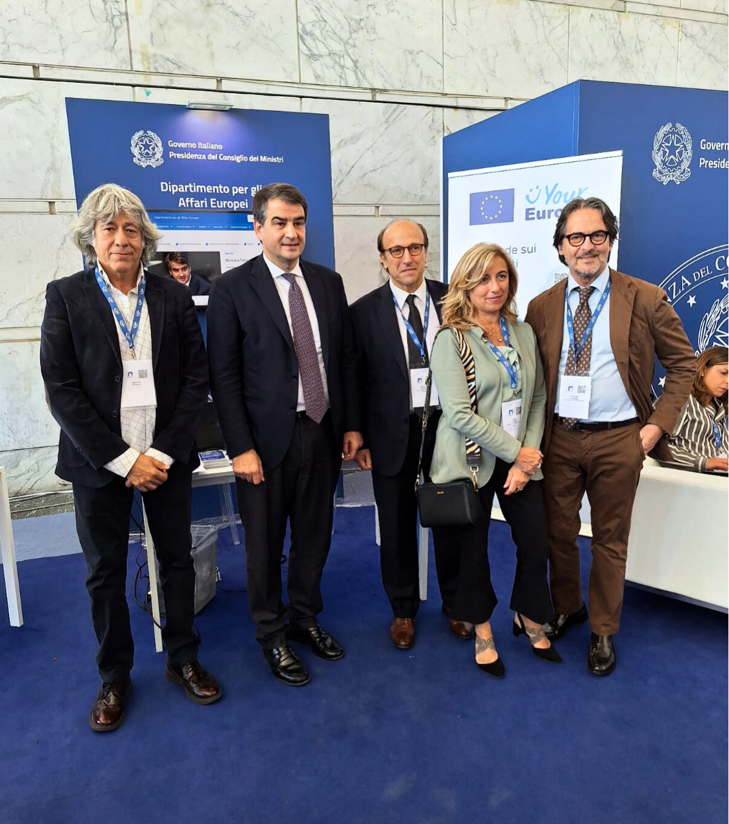 Prima del suo intervento, il Ministro Fitto ha visitato lo stand espositivo del Dipartimento per gli Affari Europei.