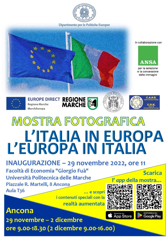 La mostra "L'Italia in Europa – L'Europa in Italia" fa tappa ad Ancona dal 29 novembre 2022 al 2 dicembre 2022 presso la Facoltà di Economia "Giorgio Fuà" dell'Università Politecnica delle Marche. Ancona è la ventesima tappa della mostra da quando, nel marzo 2017, è stata inaugurata in occasione dei 60 anni dei Trattati di Roma.