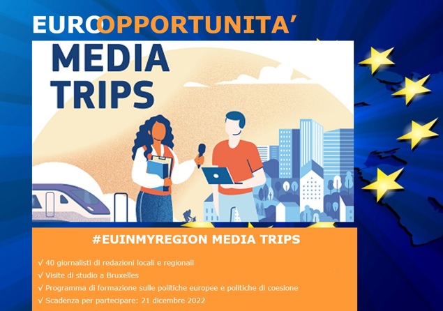 Sei un giornalista o un content creator e lavori in una redazione locale o regionale? Partecipa al programma di studio #EUinMyRegion Media Trips promosso dalla Commissione europea per conoscere meglio le politiche europee, in particolare la politica di coesione, ed entrare in contatto con colleghe e colleghi di altri paesi e regioni UE.