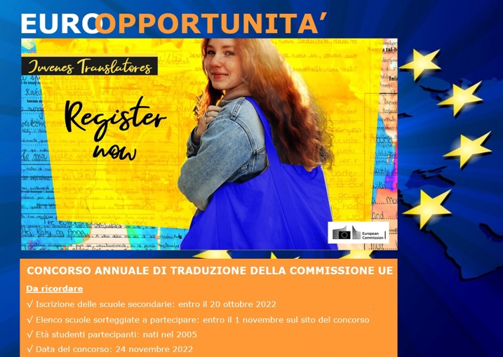 Al via la nuova edizione 2022 di Juvenes Translatores, il concorso annuale di traduzione della Commissione europea. Fino al 20 ottobre 2022, le scuole secondarie italiane possono iscriversi online per consentire ai propri studenti di competere con i coetanei degli altri paesi dell'Unione. Gli insegnanti possono compilare il modulo di iscrizione in una delle 24 lingue ufficiali dell'UE.