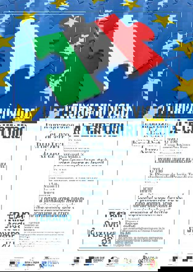 "Queste reti - ha spiegato ai media locali il Capo Dipartimento, Diana Agosti - hanno una grande significato perché possono utilizzare i fondi europei e gli strumenti che l'Europa mette a disposizione. Avere un luogo dove sviluppare idee e progetti è di grande importanza per il territorio". Ha poi ricordato due grandi sfide che in questo momento investono anche i territori: "Abbiamo il Piano nazionale di ripresa e resilienza (PNRR) che offre la possibilità agli enti locali di utilizzare con efficacia i fondi europei e rappresenta una grande occasione di sviluppo e partecipazione anche per queste realtà territoriali. Inoltre, abbiamo la Conferenza sul futuro dell'Europa che consente a tutti i cittadini di esprimere idee e opinioni sulla piattaforma messa a disposizione dalla Commissione europea che è un grande esercizio di democrazia partecipativa".