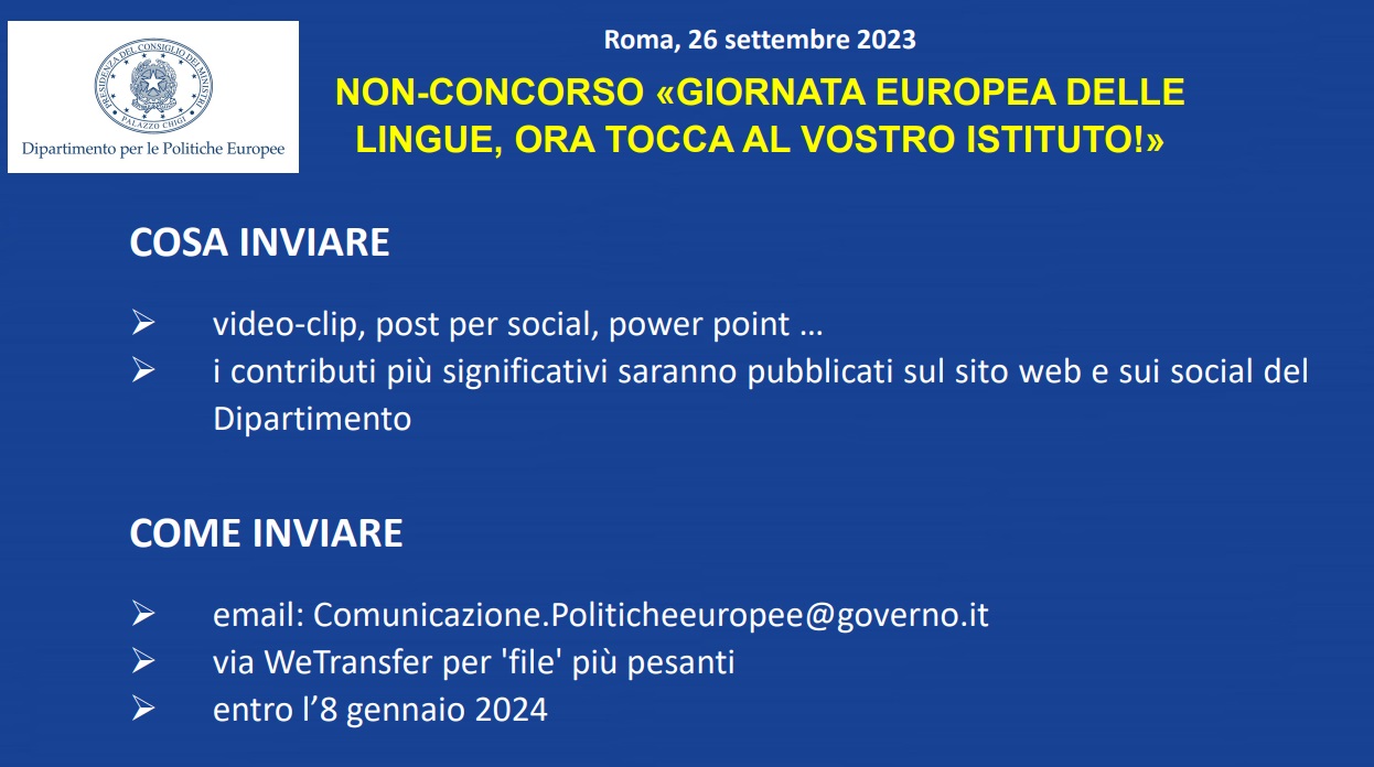 - il non-concorso "Giornata europea delle lingue, adesso tocca al vostro Istituto!"